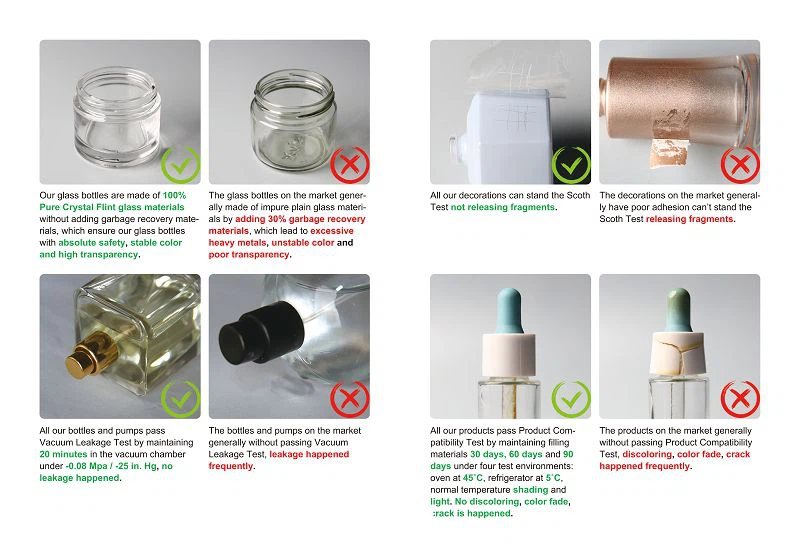 Our glass bottles undergo meticulous cosmetic inspections to eliminate any defects, such as imperfections or irregularities. We pride ourselves on our unwavering attention to detail, assuring that your cosmetics are presented in glass bottles that exude both elegance and quality. Rest assured, when you choose Tiumsen, you're choosing cosmetics packaging that reflects the essence of your brand's excellence.