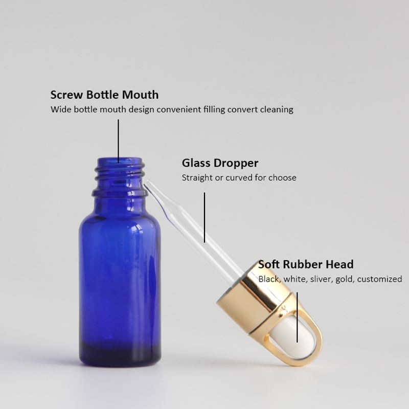 The design of this 30ml clear glass dropper bottles is inspired by Polish sapphires. Polish sapphires are known for their crystal clearness and cleanliness. They are very popular, so we designed this bottle for inspiration to create a clean and translucent bottle. The blue is the main color of the bottle, and the material is also a transparent material to increase this crystal clear feeling, and also allow customers to more clearly feel the beautiful scene of the bottle under the sun.