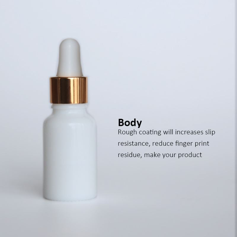 This 50ml glass dropper bottles mainly wants to reflect the sense of noble and reserved design. The pure white opaque appearance is accompanied by a golden cork. At the same time, there is no text or design on the bottle. It is simple to the extreme, but it can reveal a feeling of high coldness. You can simply print the logo or pattern that represents the company on the bottle, and use this minimalist style to attract customers who like this style. If you want to print a special mark on it, we recommend that you choose a deep dark green in the choice of color. You can refer to our renderings. The combination of pure white and dark green is very suitable, and the whole is cool.